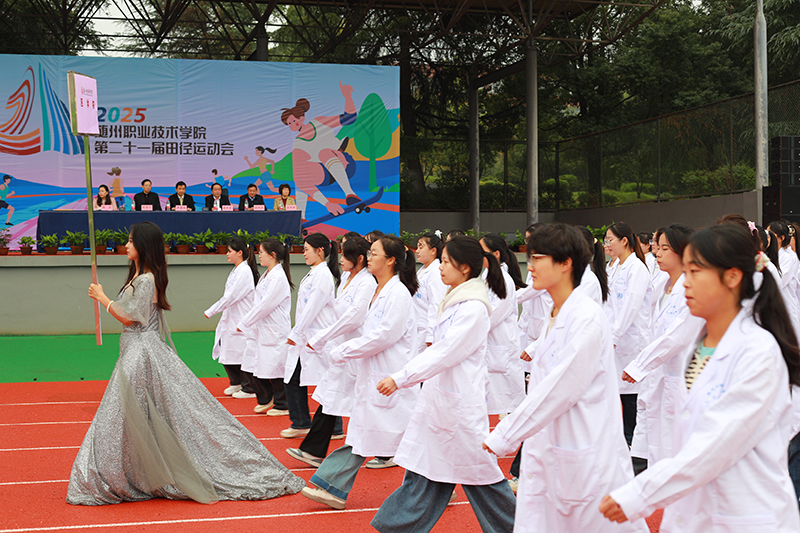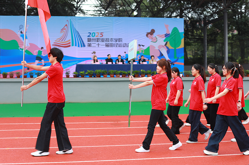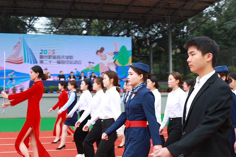 开幕式在激昂的《运动员进行曲》中正式拉开帷幕。国旗护卫队步伐铿锵,率先护送鲜艳的五星红旗入场,展现了师生深厚的爱国情怀;紧随其后的校旗方阵、会徽方阵,设计简洁而寓意深远,传承着学校的精神文脉。各学院代表队身着体现专业特色的文化衫,迈着整齐坚定的步伐,高呼嘹亮的口号,精神抖擞地通过主席台,接受全校师生的检阅。