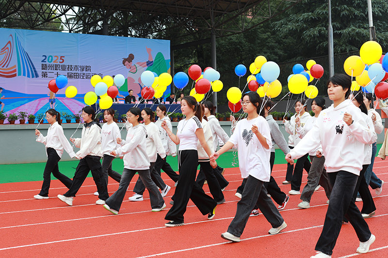 在学校党委书记李建伟洪亮的“随州职业技术学院第二十一届运动会正式开始”的宣布声中,五彩气球腾空而起,运动会各项赛事正式全面展开。