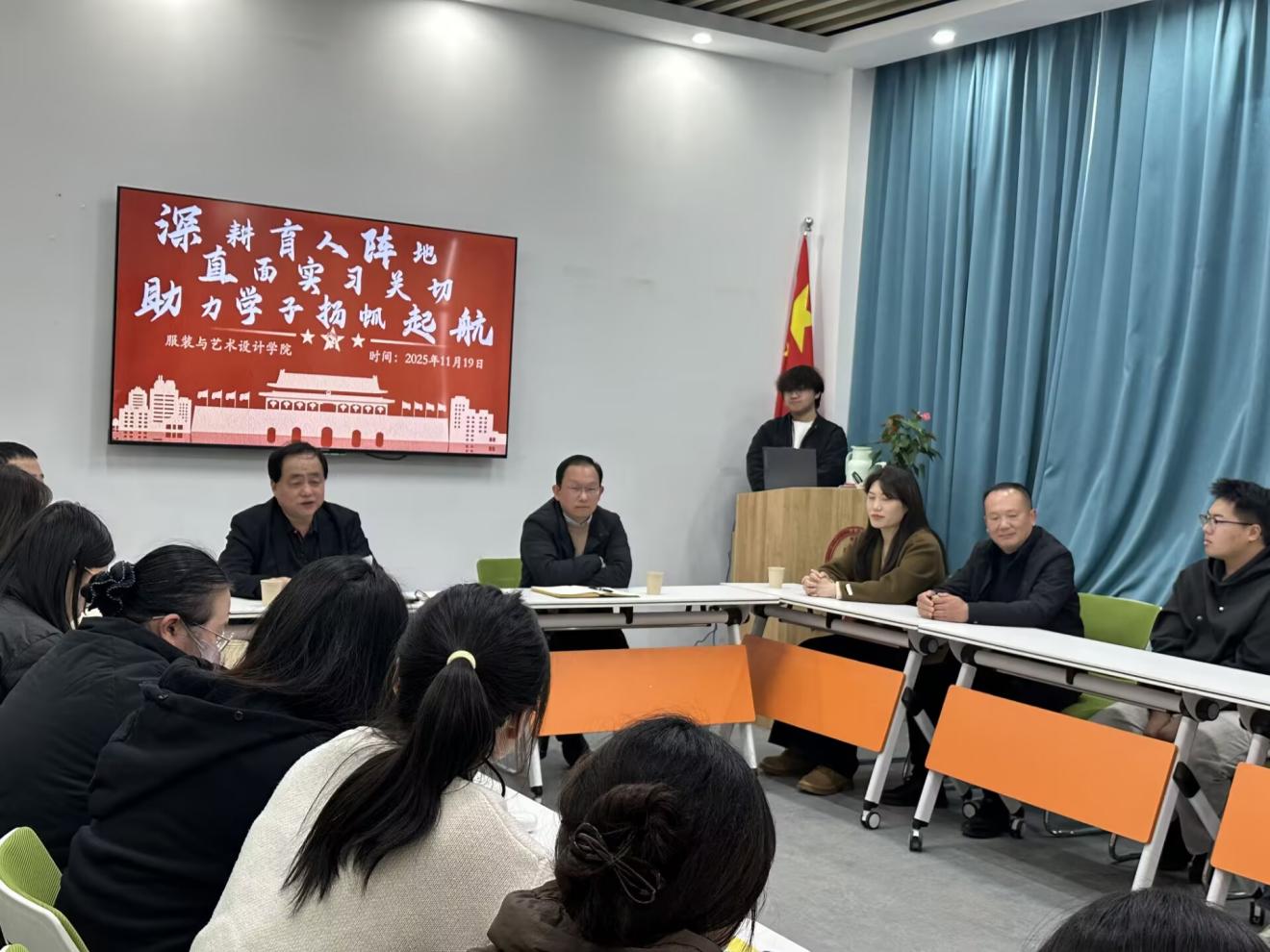 座谈会上,学生代表们结合自身困惑踊跃发言,针对实习岗位匹配、实习期间薪资待遇、突发情况处理等具体问题提出疑问。梁学军和服装与艺术设计学院相关教师逐一进行细致解答,现场交流气氛热烈,学生们的疑虑在面对面沟通中逐步消解。