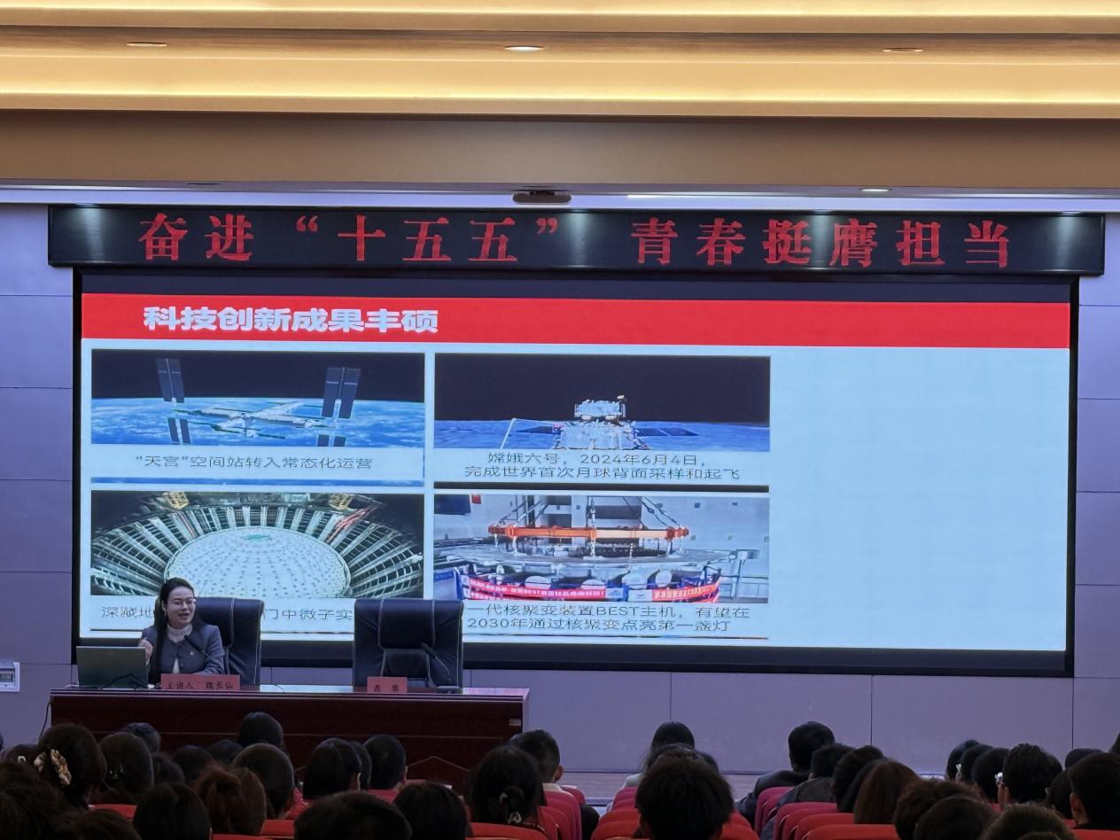 11月26日,学习贯彻党的二十届四中全会精神湖北省青年示范宣讲团、“悦学习·跃青春”随州市青年宣讲团走进随州职业技术学院开展专题宣讲。共青团随州市委副书记聂黎主持报告会。团市委相关负责同志、各县(市、区)团委主要负责同志、随州职业技术学院团委负责人、第八期“青马工程”培训班全体学员及团员青年代表共200余人参加活动。