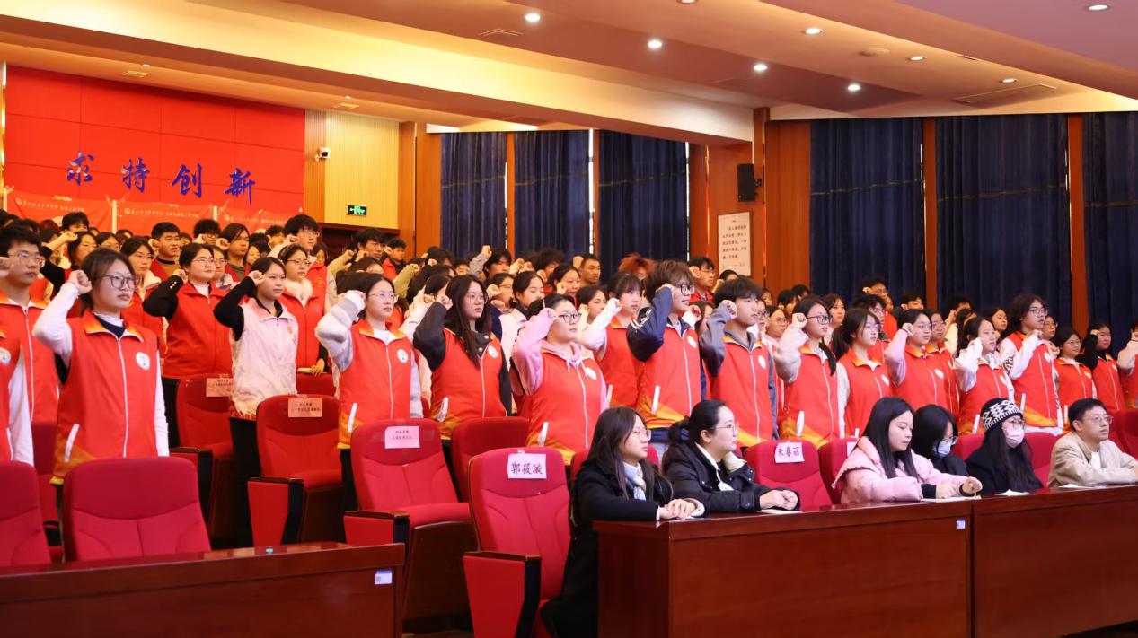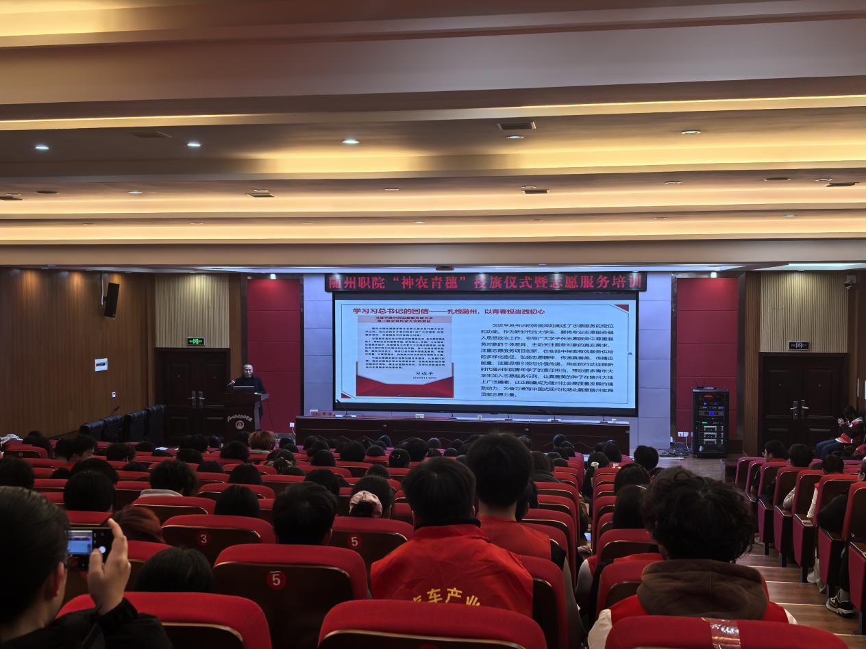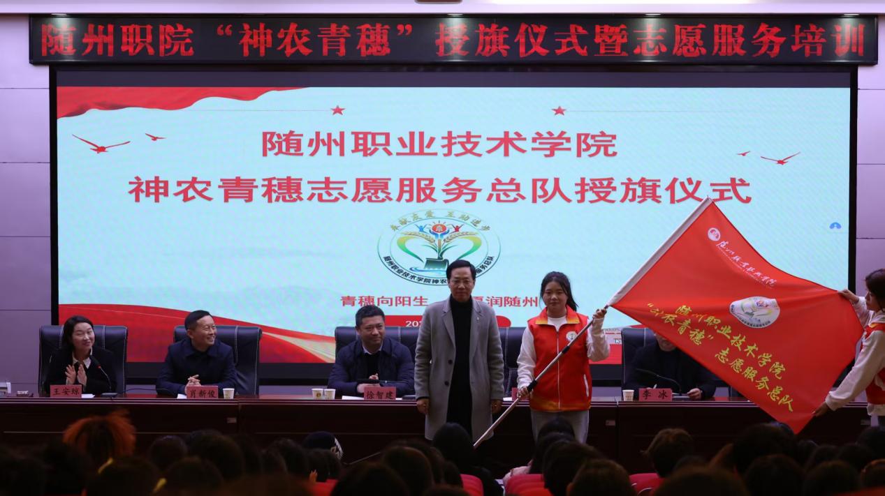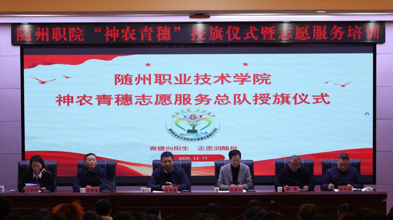 仪式上,校团委组织宣传科副科长何瑞玉宣读了《关于命名“神农青穗”志愿服务总队的决定》。总队名取意随州炎帝(神农)文化精神,寓意青春、成长与希望,归属校团委统一管理。