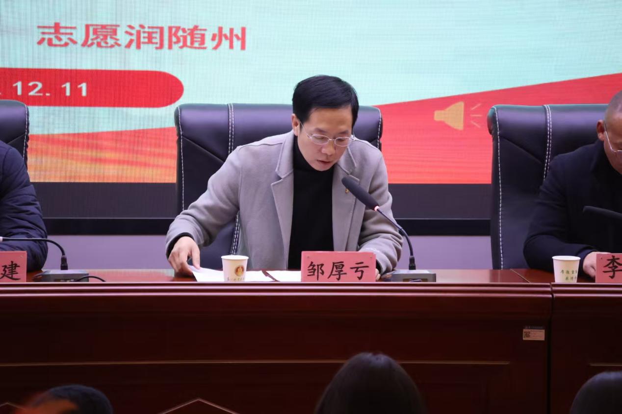 12月11日,随州职业技术学院在学术报告厅举行“神农青穗”志愿服务总队授旗仪式暨志愿服务能力提升培训。校党委委员、副校长邹厚亏,随州市委社会工作部四科科长徐智建,随州市志愿服务联合会会长李冰出席活动。学校党委宣传部、学生工作处、团委等部门负责人及各二级学院志愿服务队师生代表参加。